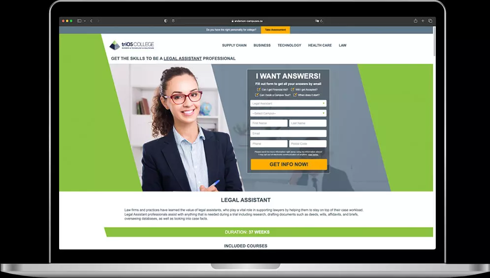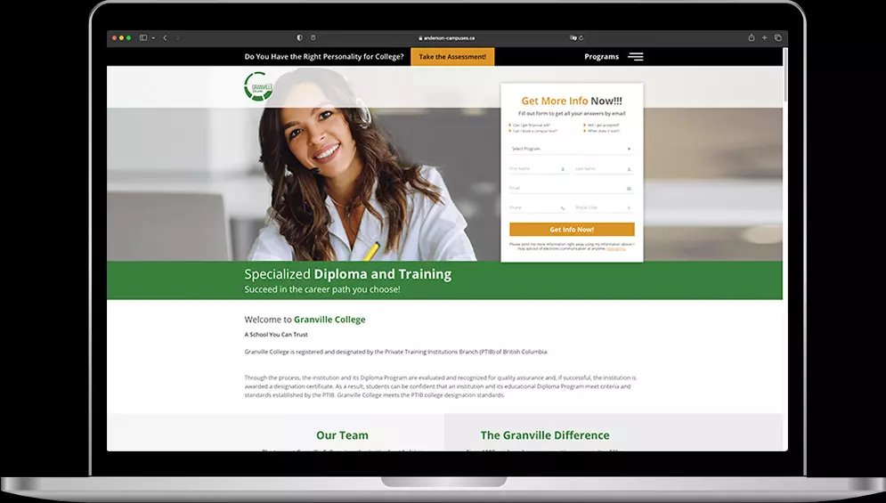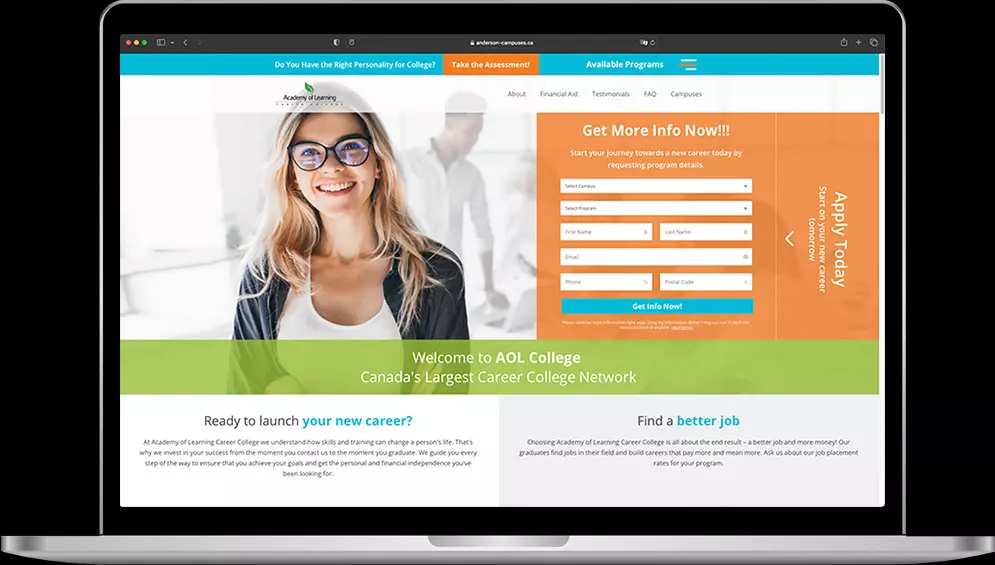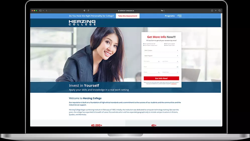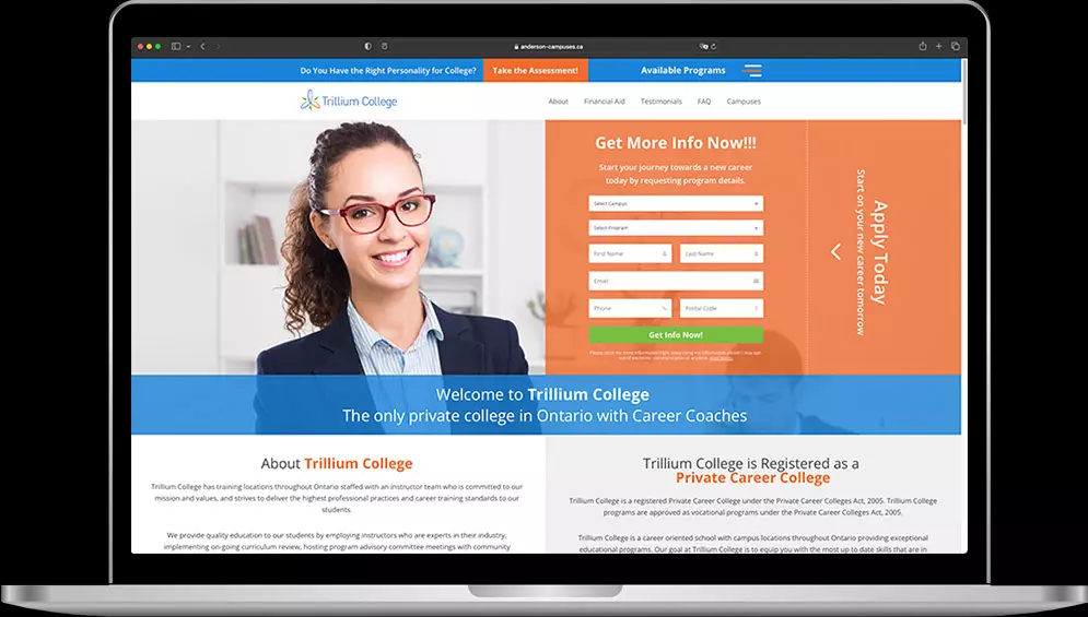 Do you need fresh and effective landing pages? Want to increase the volume of the leads that you generate yourself? We make extremely effective websites and landing pages that are strictly geared towards converting your website traffic into leads. We have a standardized approach that we don’t waver from. Our template, our design, your logos, your content, your colours. This is our recipe for your success. One standard price package includes main page and all individual program pages, form posting, data validation and secure storage on our server if desired. The best part is that our projects typically are completed within 14 days.